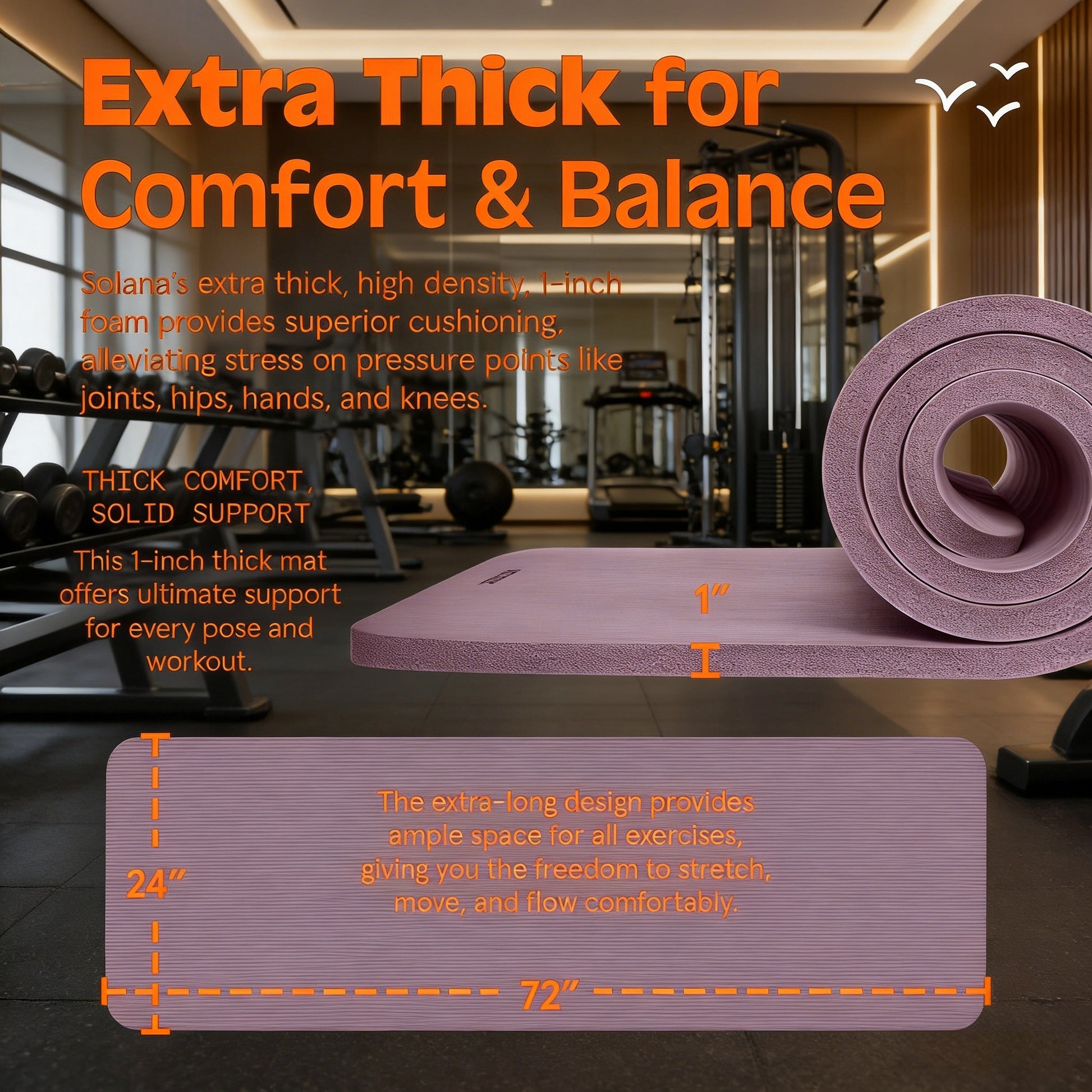 • Comfort & Size: 1-inch thick + 72”×24” extra-long design (cushions joints, ample space)